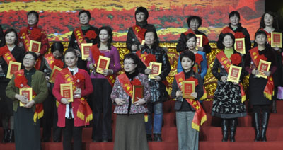 三秦文化优秀女性上台接受表彰(第二排右二为王彬馆长)