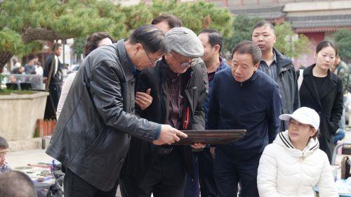 在毗邻的大唐西市古玩市场,调研团队与商户、收藏爱好者交流互动,了解丝路文化相关藏品的流通情况与收藏趋势,实地感受民间收藏对传统文化传承的推动作用。黄宏将军结合自身涵盖古代兵器、典籍书画、民俗器物的丰富收藏经历,与现场收藏者分享鉴别经验与收藏理念,强调收藏不仅是爱好,更是传承历史文化的责任。