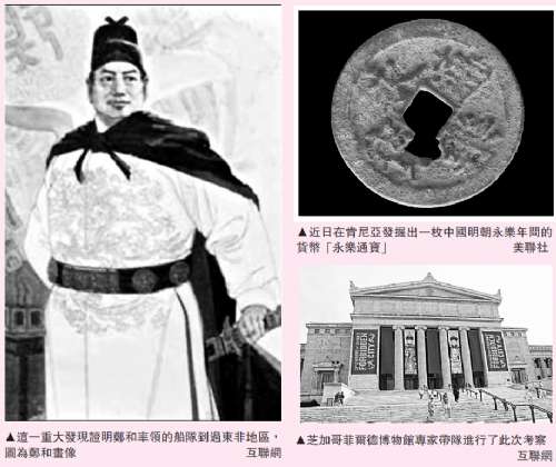 由考古学家、芝加哥菲尔德博物馆非洲人类学馆长古辛巴和伊利诺伊大学威廉姆斯教授领衔的一队联合探险队科学家,近日在肯尼亚曼达岛发掘出一枚中国明朝永乐年间的货币“永乐通宝”。